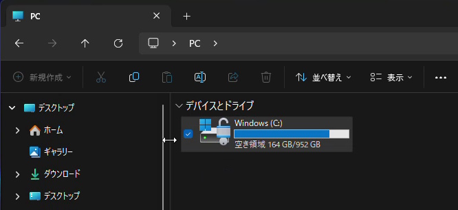 Windows 11 Home では、マイPCのドライブアイコンを見れば暗号化の有効・無効を確認できる。