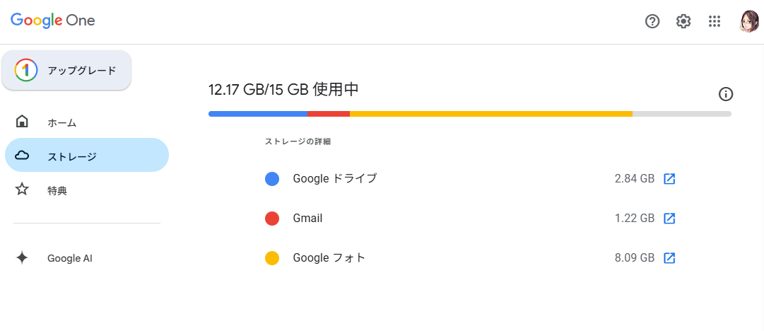 まずは、自分の Google ストレージ内で、どのサービスがどれだけ容量を消費しているのかを正確に把握しましょう。